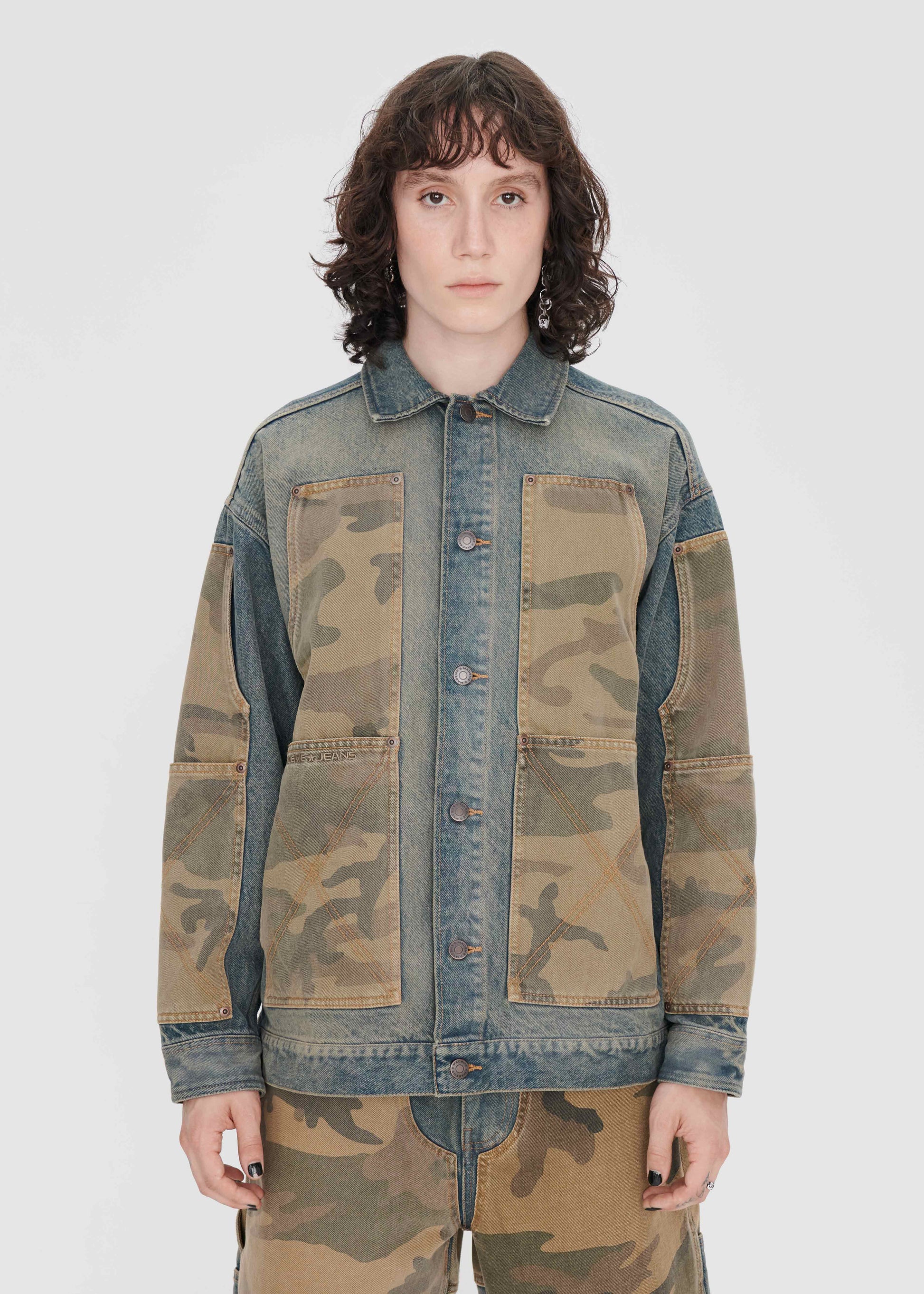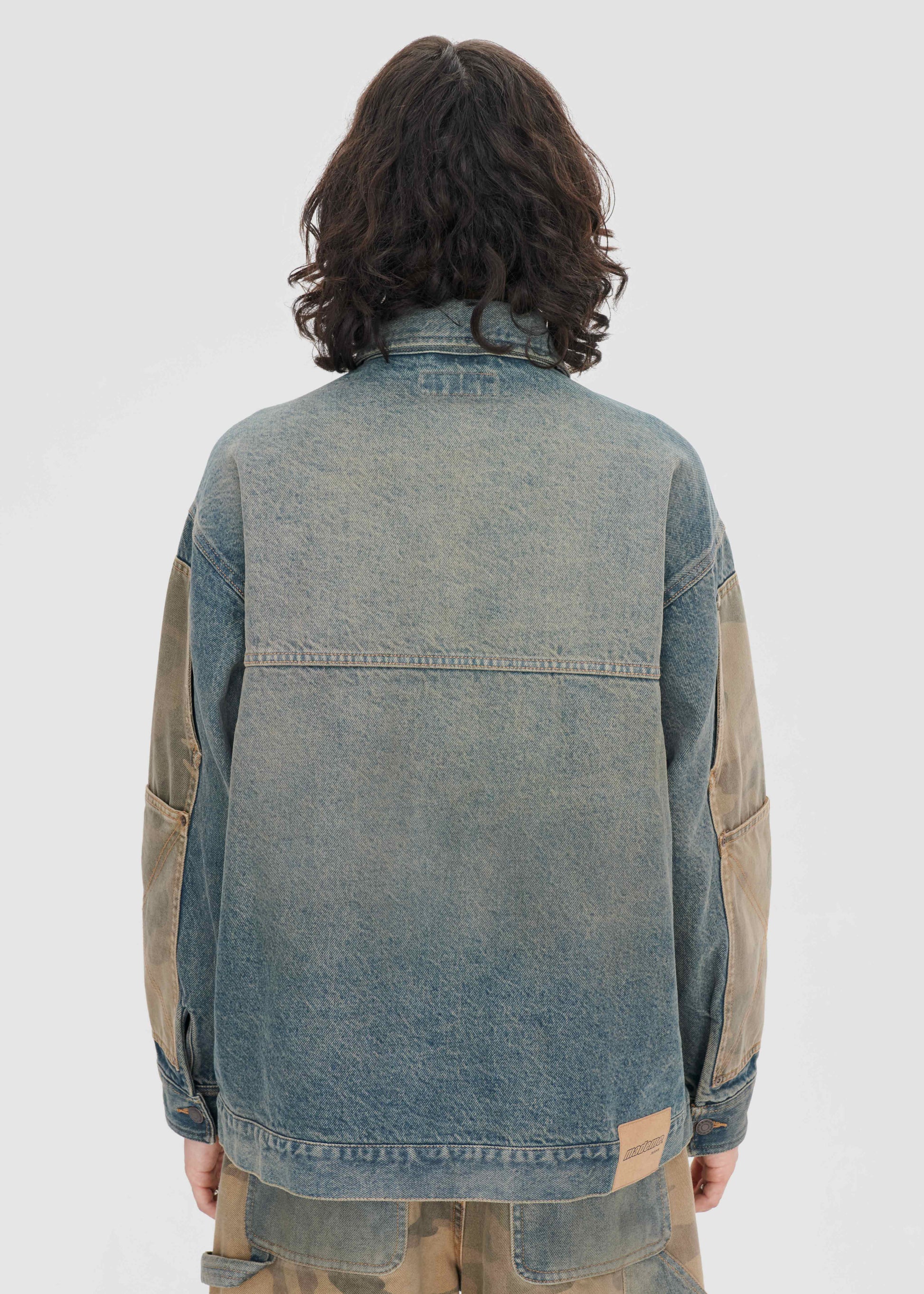 Non-stretch, 13 oz. denim with severe vintage wash. Oversized fit, patched hand pockets, and chest pockets. MadeMe paper patch at back and MadeMe branded shanks at center front. MadeMe Jeans embroidery on wearers right front pocket.